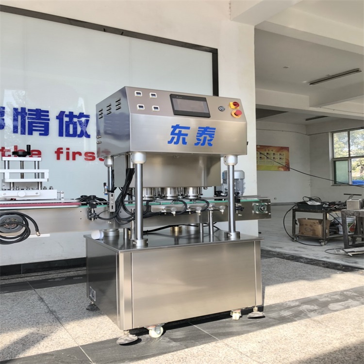 如果大家不會操作旋蓋機的話,按照上面的方法進行操作就能夠輕松使用旋蓋機旋緊包裝瓶蓋。整個旋蓋過程,操作人員只需要把瓶蓋放置到瓶口處,然后瓶子自動就會被送到搓蓋輪出進行擰緊,從而完成旋蓋操作,可以是操作方法是非常簡單的。
